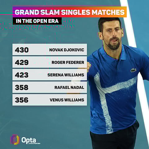 Novak Djokovic made grand slam history at the Australian Open as he featured in his 430th singles match. (More Tennis News)
