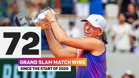 Swiatek has won 72 grand slam matches since the start of 2020, with Aryna Sabalenka (62) and Ons Jabeur (51) the only other players to surpass 50 in that time.
