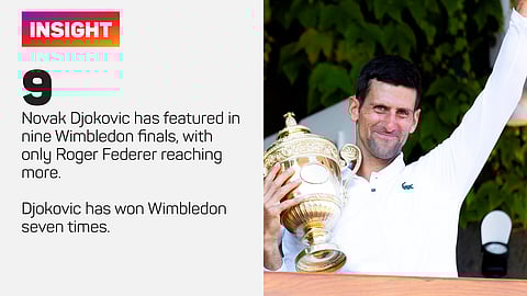 He was defeated by Alcaraz in last year's final, the ninth showpiece match he has played in at the All England Club. That trails only Federer, who reached 12 finals at the grand slam.