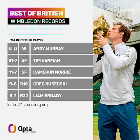 He holds a 90% win record at Wimbledon, having won 18 of his 20 matches at the All England Club. Only two other men hold a win ratio of 90% or higher at the event - Bjorn Borg (92.7%) and Pete Sampras (90%).