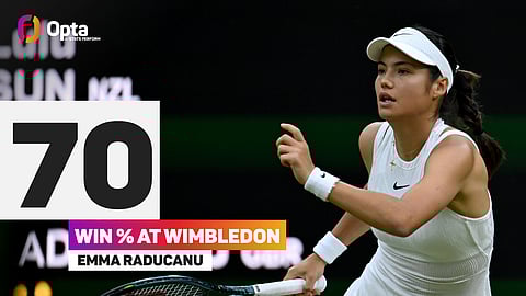 Wimbledon is the only major where Raducanu has enjoyed multiple trips past the third round (also round four on her main-draw debut in 2021), and her win ratio of 70% at SW19 (7-3) is the best of any British woman since the turn of the century.