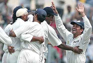 Irfan Pathan (2-90) then provided the breakthrough witha well angled ball that took Inzamam's edge for a simple catch to thewicketkeeper.