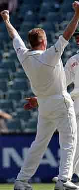 AB de Villiers (6) was shocked by a delivery from Zaheer Khan which rose abruptly and a defensive jab ended in the hands of Virender Sehwag in the gully region. Mark Boucher (5) became Sreesanth's fourth victim when he inside edged a delivery on to his leg-stump and South Africa had five of their top order back in the hut.Shaun Pollock (5) made it a first fiver for Sreesanth as he missed a delivery heading on to his stumps.Sreesanth ended with 5 for 40.