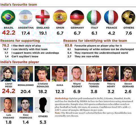 India’s passion for Brazilian football isn’t only a matter of perception or bleary impressions gained from talking to PLUs. In an Outlook-MDRA survey conducted in five football-crazy cities of India, Brazil notched maximum support—42.2 per cent, followed by Argentina, a poor second at 17.4 per cent. None of the European giants could even register a 10 per cent support. Most cited Brazil’s attractive style to justify their choice.