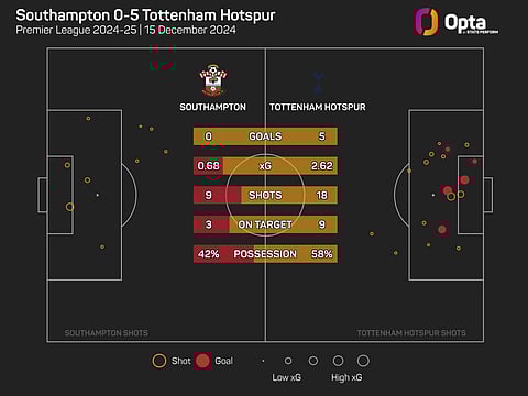 Spurs scored five first-half goals for the first time in their Premier League history as they took the Saints apart in a rampant 45 minutes, James Maddison's brace sandwiching strikes from Son Heung-min, Dejan Kulusevski and Pape Sarr.