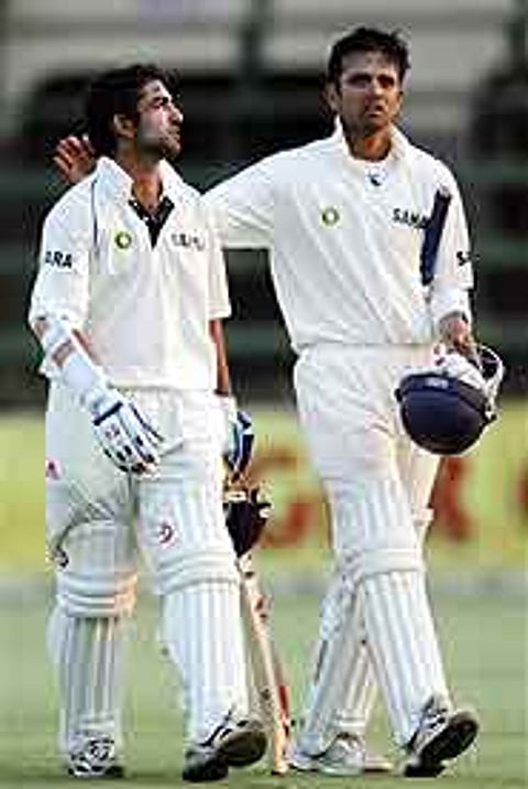 The seasoned Rahul Dravid was giving Gambhir company on 49 in what turned out to be a highly satisfying day for the Indians after putting the Zimbabweans in to bat on a track which provided some assistance to the seam bowlers.