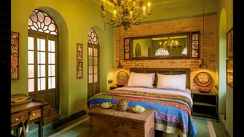 This heritage BnB in North Kolkata takes its design cues from the area’s rich history. Its six rooms showcase the professions of old neighbourhoods and their trade. The Mochipara room, dedicated to cobblers, has Kolkata’s typical leather conductor bags on the walls. Jatrapara, the room dedicated to theatre artists who lived in the area, has a collage of colourful jatra posters. Dedicated to tailors and dressmakers, the Darzipara room has an old sewing machine turned into a table. The walls of the Patuapara room, the only one on the ground floor, show off the folk art of patuas. Boipara is a nod to College Street with its shelves stacked with old books from Abanindranath Tagore’s Raj Kahini to Julius Fucik’s Phansir Mancha Theke (based on the diary of Fucik who was a Czechoslovak journalist and a member of the Communist Party of Czechoslovakia). And Sahibpara has Victorian buggy lights and photographs of old Calcutta.