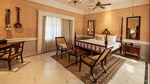 Located strategically on the Eastern Metropolitan Bypass, opposite Salt Lake Stadium, Raajkutir isn’t quite the same as the others on this list. Built on 13 acres, this is Ambuja Neotia’s latest development. The residence is an inspired period piece with 33 immaculately designed rooms with curated vintage décor. The architecture reflects the Bengal of the past with cast-iron balconies, patios, crests, etc., while the amenities are modern-day, including an all-day diner, a spa, a gym, a pool, an artisans gallery and a shopping arcade. The all-day dining space called East India Room reflects Bengal’s culinary influences—Jewish, British, Portuguese and Anglo-Indian. The Loafer’s Café is a patisserie and boulangerie that attempts to replicate Victorian-era high tea. The property, which recently came under the IHCL SeleQTions umbrella, also has three large banquets and facilities for corporate events or exhibitions. While Raajkutir has structured a fictional story behind it, of a certain Kaliprasanna Singha and his family, you can sign up for a tour to hear more about the fanciful tales.