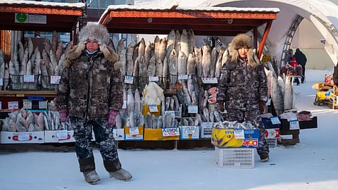 Russki chai or vodka helps deal with the extreme temperatures. The low temperatures mean you cannot grow vegetables here. So locals mostly eat frozen raw fish and meat, including horse liver.