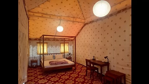 In the middle of all the antiquity, the Mandu Festival 2022 provided a refreshing dose of the modern with its curated experiences. The first novelty for me was the glamping site, located opposite Chhappan Mahal, under a pretty grove of trees with picturesque views of a large lake and a sprawling, magnificently old banyan tree. I was pleasantly surprised to find the tent reserved for me equipped with all the facilities needed for a most comfortable stay (including a perfectly functional toilet, non-stop supply of warm water and eminently warm blankets). And by the time I left, I had fallen in love with the mellow, yellow glow of the globular, balloon lamps that illuminated the interiors—so much so that I wanted to carry one of them back home as a souvenir.