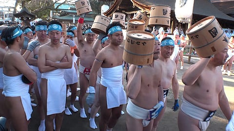 But a prefecture in Japan belies this stereotype once a year, as thousands of men brave the cold for what is popularly known as the 'Naked Man Festival'.