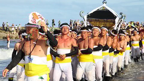 The festival, celebrating a bountiful harvest, evolved from an ancient ritual that started during the Muromachi Period (1338-1573), when villagers competed to grab paper talismans, which were given out by a priest at the Saidaiji Kannonin Temple. It was designated an Important Intangible Folk Cultural Asset in 2016.