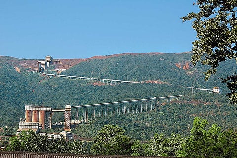 A state-of-art 5 km single flight regenerative conveyor at Donimalai, Karnataka with vertical and horizontal curves has been provided for efficient and environment friendly transportation of iron ore. It is equipped with a maintenance trolley, dispensing with the regular maintenance galleries.
