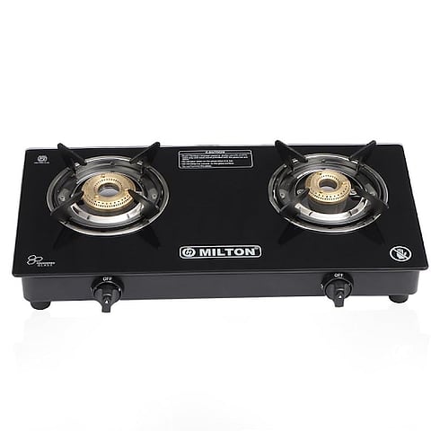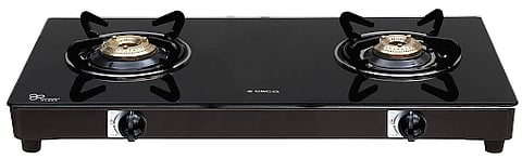 Best stylish glass top: Elica Vetro Glass Top 2 Burner Gas Stove featuring a premium finish glass top, toughened glass with a 2-year warranty, and high-quality brass burners. Its sleek design and durable construction add a touch of elegance to any kitchen decor.