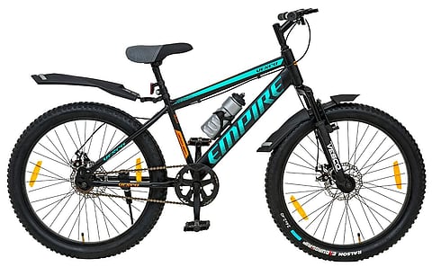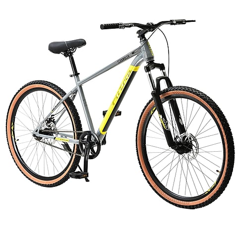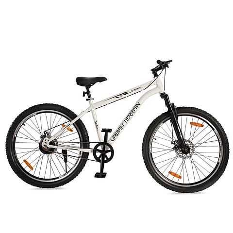 The Urban Terrain Bolt Cycle is a single-speed MTB with front suspension, and dual disc brakes designed for adventurous men and boys is among one of the best cycles in India. The sturdy steel frame ensures durability on rough terrains, while the double-walled alloy rims and 27.5-inch wide tires provide a comfortable and high-performance ride. Adjust the saddle height effortlessly for superior comfort, and enjoy a three-month Cult Pass Live for access to home workouts and meditation sessions. Braking is stable and quick with high-quality disc brakes, making it ideal for navigating crowded markets. Don't miss the opportunity to grab this Urban Terrain gem early for enduring quality and an active lifestyle.