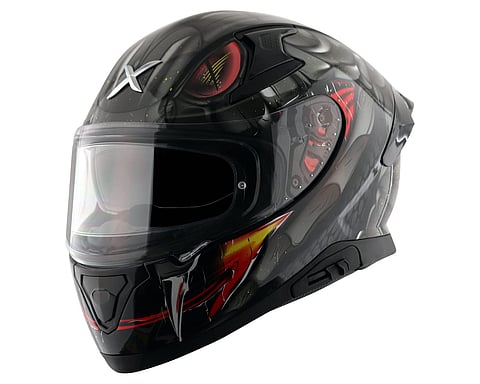 Axor Apex Venomous Helmet in Black Grey is a stylish and safety-focused choice for Sport Bike riders. Weighing 1500 grams, it's a balanced option for both men and women. With ISI, ECE, and DOT certifications, it meets international safety standards. The dual visor system, pin-lock mechanism, and integrated spoiler enhance performance. Made from durable ABS and polycarbonate materials, it offers streamlined ventilation and a secure fit. This affordable helmet provides top-notch protection for an enjoyable motorcycling experience.