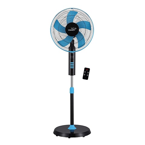 Best wide oscillation range: V-Guard Esfera 5 Blade Pedestal Fan comes with a remote control and features a 90-degree oscillation and up-down tilt mechanism, providing a wide airflow range for comprehensive room cooling.