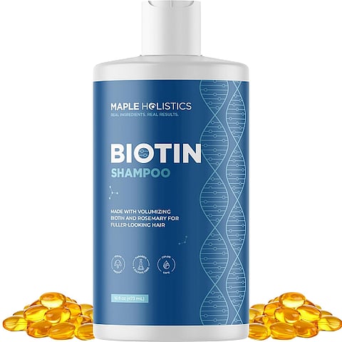 Best for Oily Hair: Maple Holistics Biotin Thickening Shampoo offers a solution with natural DHT blockers and thickening oils like coconut and jojoba, effectively reducing excess oil production while promoting hair growth and volume.