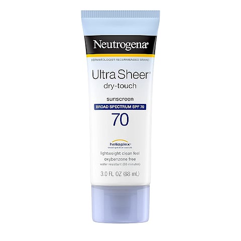 Best Sunscreen for Oily Skin: Neutrogena Ultra Sheer Dry-Touch Sunblock SPF 70 is a lightweight sunscreen that absorbs excess oils, leaving a clean, non-shiny finish, making it ideal for oily skin types.