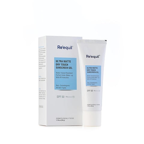 Re'equil Ultra Matte Dry Touch Sunscreen Gel is a game-changer for all skin types, providing a matte finish without any white cast. With SPF 50 PA++++, it offers broad-spectrum protection against UVA, UVB, and Infrared rays. Water and sweat-resistant, this non-greasy and non-comedogenic sunscreen ensures long-lasting protection during outdoor activities. The oil-free formulation makes it ideal for all-day wear, and its smooth application makes it an all the more appealing choice.