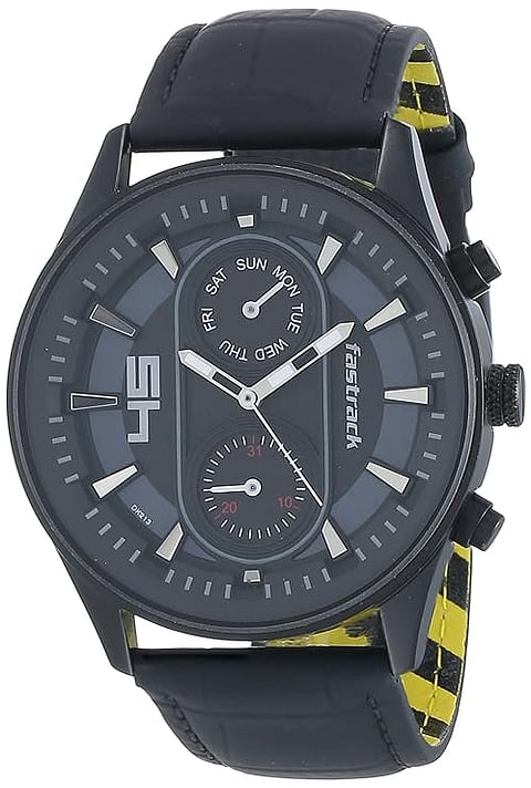 Best Budget: The Fastrack Men Leather Fastfit Analog Black Dial Watch is a budget-friendly option without compromising on style or functionality, featuring a 44.5mm case diameter, black leather band, and 5ATM water resistance.