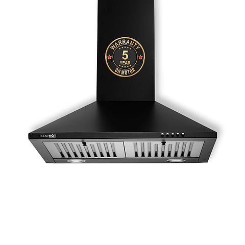 BLOWHOT IRIS S BPC Chimney, with its Irish Black design, offers powerful 800 m³/h suction, ensuring a smoke and odour-free kitchen. The 3-speed push control, dual baffle filter, and low noise level make it perfect for any gas stove, ideal for heavy frying or grilling. Enjoy the longest warranty in this segment with 5 years on the motor. Register within 48 hours for free installation. Elevate your kitchen with this modern, sleek, and efficient chimney. Transform your cooking space now!