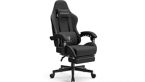 The Dowinx Gaming Chair offers an ergonomic and comfortable gaming experience with its fabric material, pocket spring cushion, and massage functionality. It comes with a headrest and footrest and supports up to 290 lbs. The price is 16,599 INR.