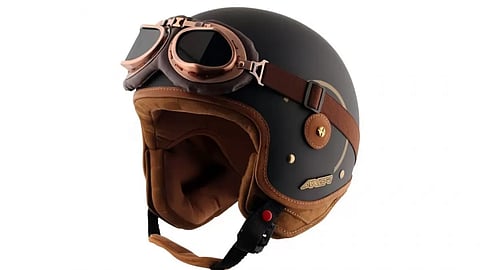This open-face helmet costs Rs. 4,744 and has a scratch-resistant, High-strength visor with UV protection and UV-protectant goggles.