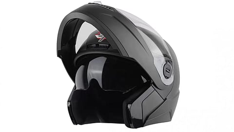 Available in plenty of colours and three sizes, the Steelbird SBA-7 7Wings Flip-Up Helmet is made of high-grade polyurethane and features breathable padding with a neck protector. The helmet is breathable, has a quick-release micro-metric buckle and visor change mechanism and looks super stylish.