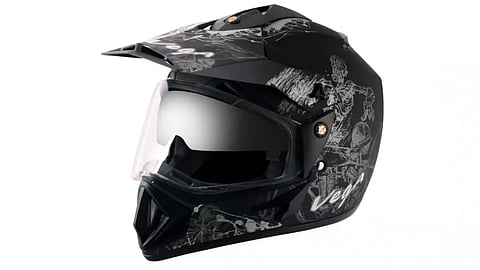 Made of high-impact Acrylonitrile Butadiene Styrene (ABS) material with a classic aerodynamic design, the Vega Off Road D/V Sketch Dull Black Silver Helmet is ISI-certified and provides good safety while riding at an affordable price.