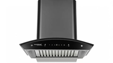 The Eurodomo 60 cm 1200 m³/hr Auto-Clean Curved Glass Kitchen Chimney boasts a strong motor with a suction capability of 1200 cubic metres per hour.