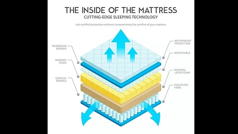 The first of its type in India, LiveIn Adapt by Duroflex, is a flippable adjustable firmness roll pack mattress with three interchangeable firmness layers: soft, medium, and firm HR foam. It also includes a 3 Zone Pocket Spring.