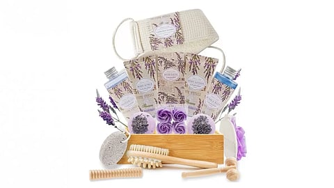 This luxurious gift basket by Douce Nuit has 18 Bath and Body Home Spa pieces with a bubble bath bomb lotion massager roller and loofah scrubber to relax at home with lavender's calming fragrance and essence. It costs Rs. 11,613 and is India's best Mother’s Day gift in 2023.