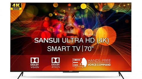 The SANSUI 178 cm (70 inches) 4K Ultra HD Smart Android LED TV is a high-quality smart TV with large screen size and advanced features. It offers a stunning 4K Ultra HD resolution and comes with the Android operating system, making accessing various streaming services and apps easy.