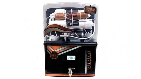 It has an advanced 6-stage UV & UF purification system. Its copper protection adds anti-microbial and anti-bacterial properties. Its mineral health charger technology restores and enhances essential minerals like calcium and magnesium lost during purification.