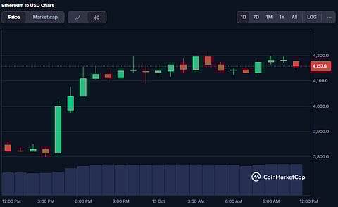 Ethereum’s price saw a strong drop even before the weekend, going down from $4,755 on October 7 to $4,355 by October 10.