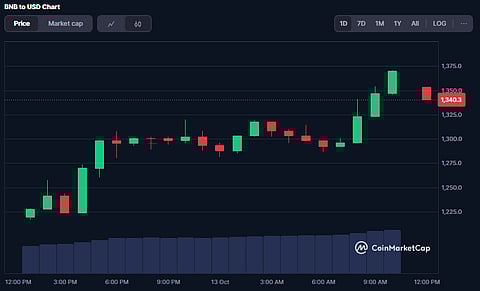 Like the others, BNB saw a dip on October 10, going from $1,300 seen the day before to nearly $1,000. However, the coin was quick to bounce back up, reaching $1,200 by Saturday afternoon.