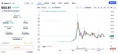 Quant is quietly setting itself up to be the main bridge between traditional finance and blockchain technology. The token has been trading between $73 and $83 in early November, far below its all-time high of $428 from 2021. But the recent activity shows that big investors might be slowly buying at these levels.
