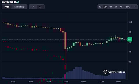 Like most other cryptocurrencies, Story saw a major price dip late on Friday, dropping from above $8 to $2.4.