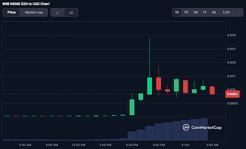The project emerged as the largest gainer late on October 7 and early October 8, with its price soaring from $0.0002922 to $0.01897, before dipping to $0.0084. Despite the drop, its price is still over 3,000% higher than it was 24 hours ago, making this token the best crypto to buy now for those looking for major gains.
