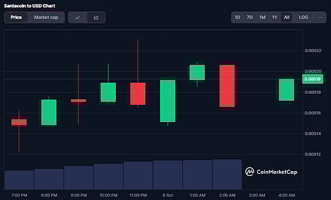 In other words, the project rewards holders through automatic reflections, seasonal giveaways, NFT collectibles, and charitable initiatives that spread real-world cheer. Santacoin’s token, SANTA, saw a quick price surge after going live, soaring from $0.0001136 to $0.00022 in less than six hours. Since then, the token saw a minor price drop, as early investors took profits.