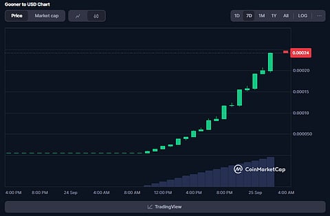 Gooner is by far the top performer in the crypto industry, and its largest gainer at this time. Despite being a small-cap crypto with a market cap of only $10.3 million, GOONER has seen a surge of 4,500% in the last 24 hours, and a 4,740% since its launch.