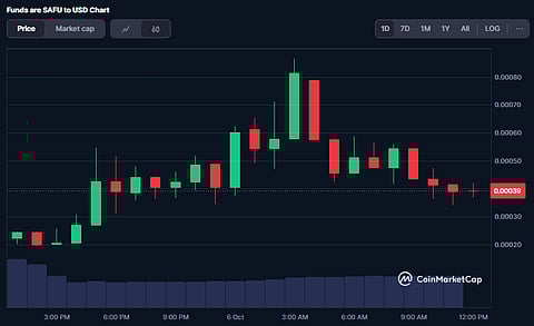 The SAFU token saw launch only a few days ago, and while it initially saw a price dip, its value soared again in the last 24 hours, going from $0.0002644 to $0.0008376. Since then, it dipped to $0.00039, but it is currently still 174% higher than 24 hours ago.