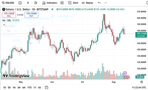 The current Solana price is $174.84, having decreased by 3.94% over the past 24 hours. The market capitalization of Solana is $94.35 billion, with a daily trade volume of $5.94 billion. Solana is also one of the fastest Layer 1 networks in existence, powering thousands of DeFi and NFT applications with high scalability and low fees.