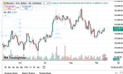 The price of Bitcoin is $113,261.98, having fallen by 0.28%, yet its market capitalization remains the highest at $2.23 trillion. The trading volume of Bitcoin rose by 10.87% to $47.98 billion.