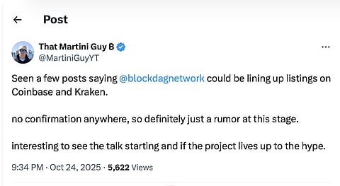 The crypto world loves rumors, but few have set the internet ablaze like this one. Over the past 24 hours, Crypto Twitter has gone into a frenzy after a post from @CryptoRover claimed that BlockDAG (BDAG) might soon appear on Coinbase and Kraken.