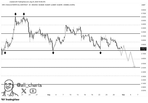 Many voices note persistent resistance and failed rallies may push XRP lower. A technical forecast shows that XRP must hold above $2.77 to avoid a retracement to $2.40.