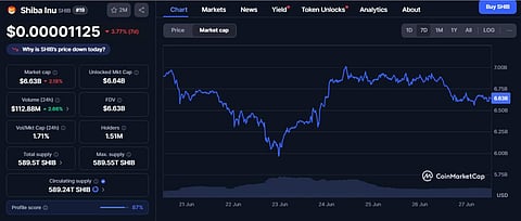 As Shiba Inu targets a return to the top 10 cryptocurrencies with a $25 billion market cap goal, attention is shifting. Investors are closely watching presale metrics and Layer 2 blockchain advancements among emerging meme coins. SHIB’s market strength is notable, but momentum appears to be building behind a fast-moving competitor. Little Pepe is emerging as a top contender amid its structured token sale and Layer 2 network launch. Tracking the ongoing trend as of press, data presented by Coin Market Cap suggests that the market cap of Shiba Inu displayed some signs of recovery after a minor decline. The chart shows a comeback which began on June 24, and saw the market cap jump to a bit over 6.75 billion before settling at 6.63 billion.