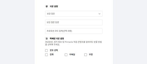 다음은 어려워 보이지만 알고 보면 쉬운? 피나클 가입 양식 작성창인데, 주의할 양식창들 몇 가지만 아래 체크해 보았다.