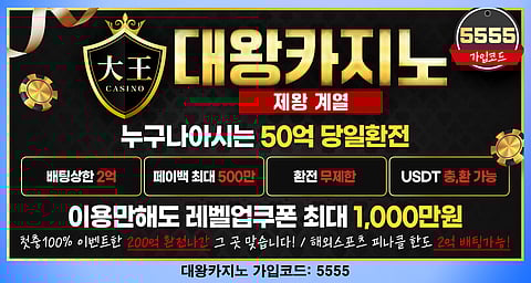 대왕카지노는 5억 원 이상의 보증금을 예치하고 정식 해외 라이센스를 보유한 제왕 계열의 프리미엄 카지노사이트입니다.